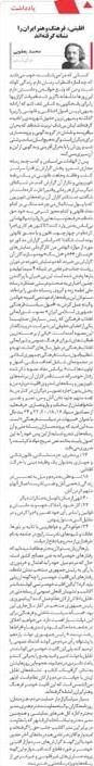 این متن در صفحهی آخر روزنامهی شهروند در تاریخ شنبه ۲۵ مردادماه چاپ شد و البته من ۹ آبانماه چند خط دیگر به متن افزودم